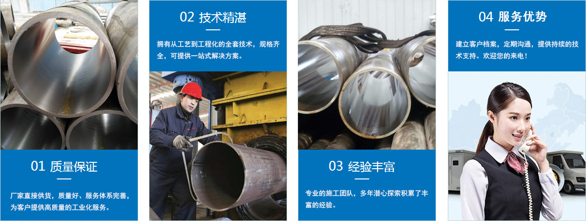目前公司品種規(guī)格為:內(nèi)徑直徑30mm—300mm,壁厚為2mm—40mm。技術(shù)條件為:內(nèi)孔精度H5—H10,內(nèi)孔粗糙度Ra≤0.63um,直線度≤0.3mm/m。鋼號(hào)是20#—45#、16Mn、27SiMn及部分低合金鋼,標(biāo)準(zhǔn)GB8713-88。規(guī)格為40-300*2-40MM,長(zhǎng)度為2-12M的各種類型油缸管,年產(chǎn)銷售能力3萬噸。公司設(shè)備先進(jìn),工藝優(yōu)化,檢測(cè)手段完善。